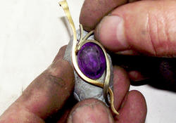 -Once he had made the body of the pendant and the settings he soldered all parts together and pre polished the pendant. Next it was time for the pendant to be sent off for hallmarking.