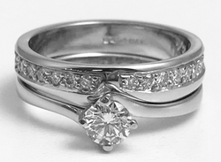 Here are a selection of our one off, bespoke wedding rings, made by Martin. Why not visit us with your engagement ring and we can show you how we would create a wedding band that slots into place.